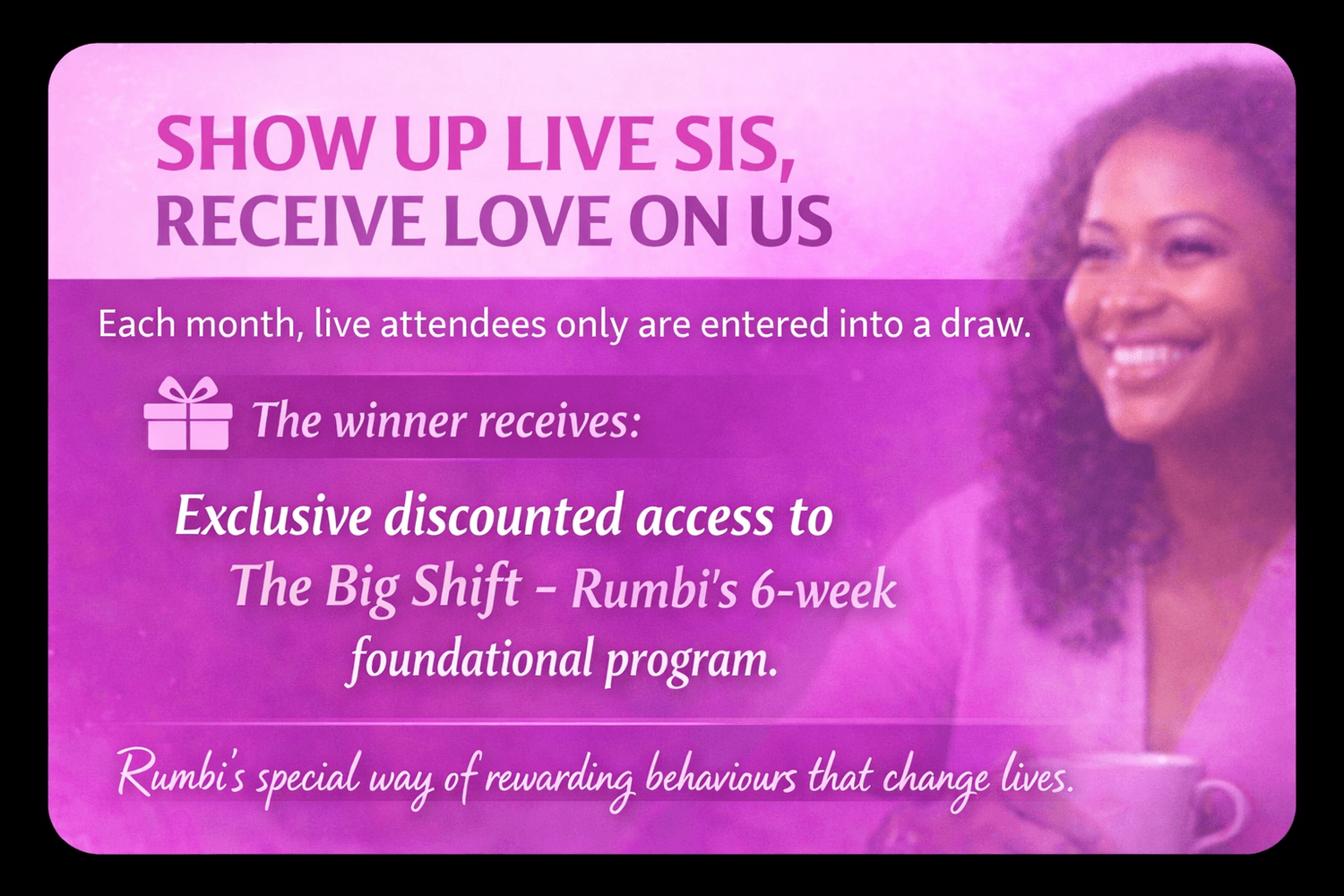 No pressure. All registrants will receive limited-time replay access — so you can tune in when it works for you. But if you can, show up live. There’s an energy in the room that replay can’t replicate — plus live attendees get an exclusive gift.